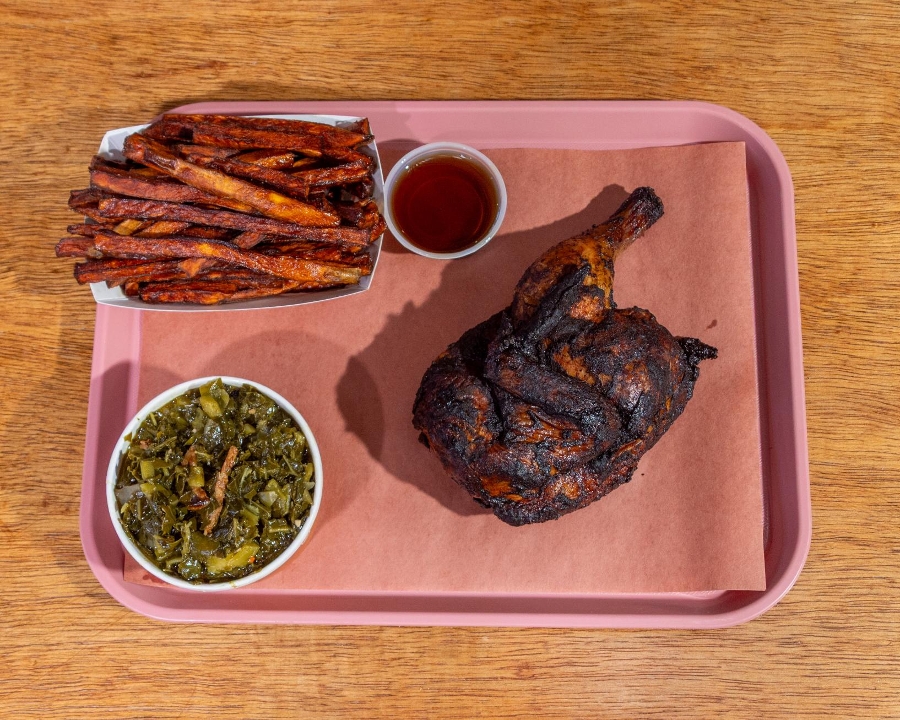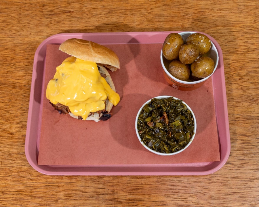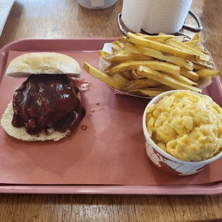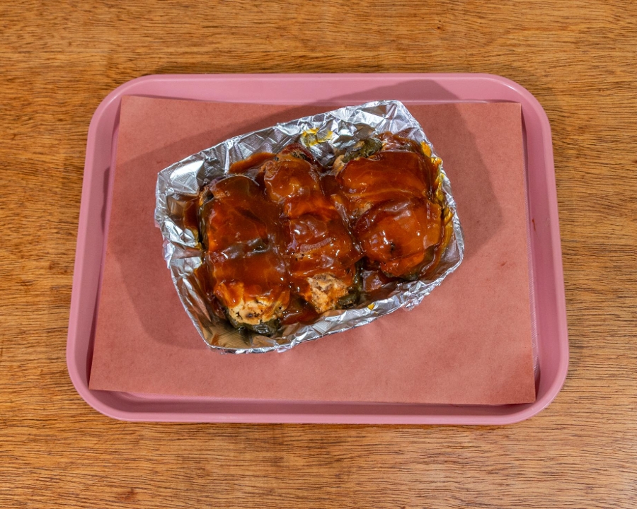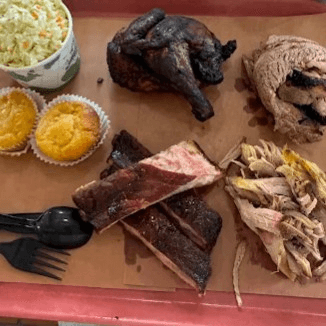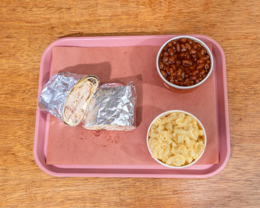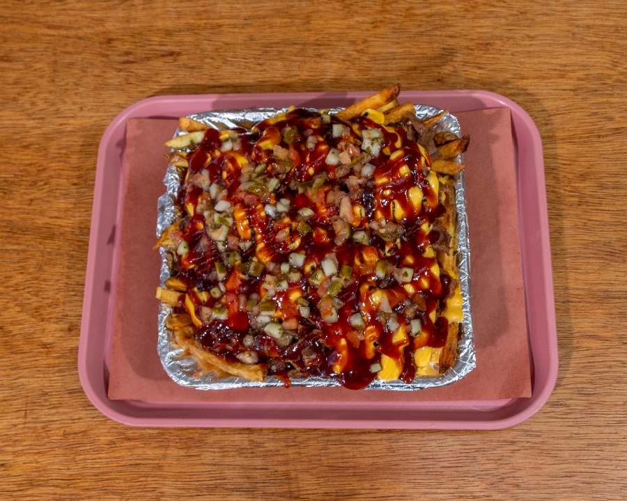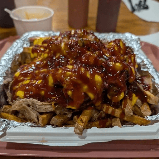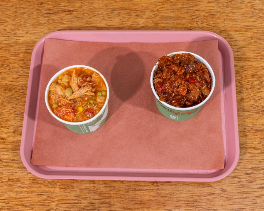 Pulled Pork, Chicken, Veggies in a mild BBQ stew sauce
